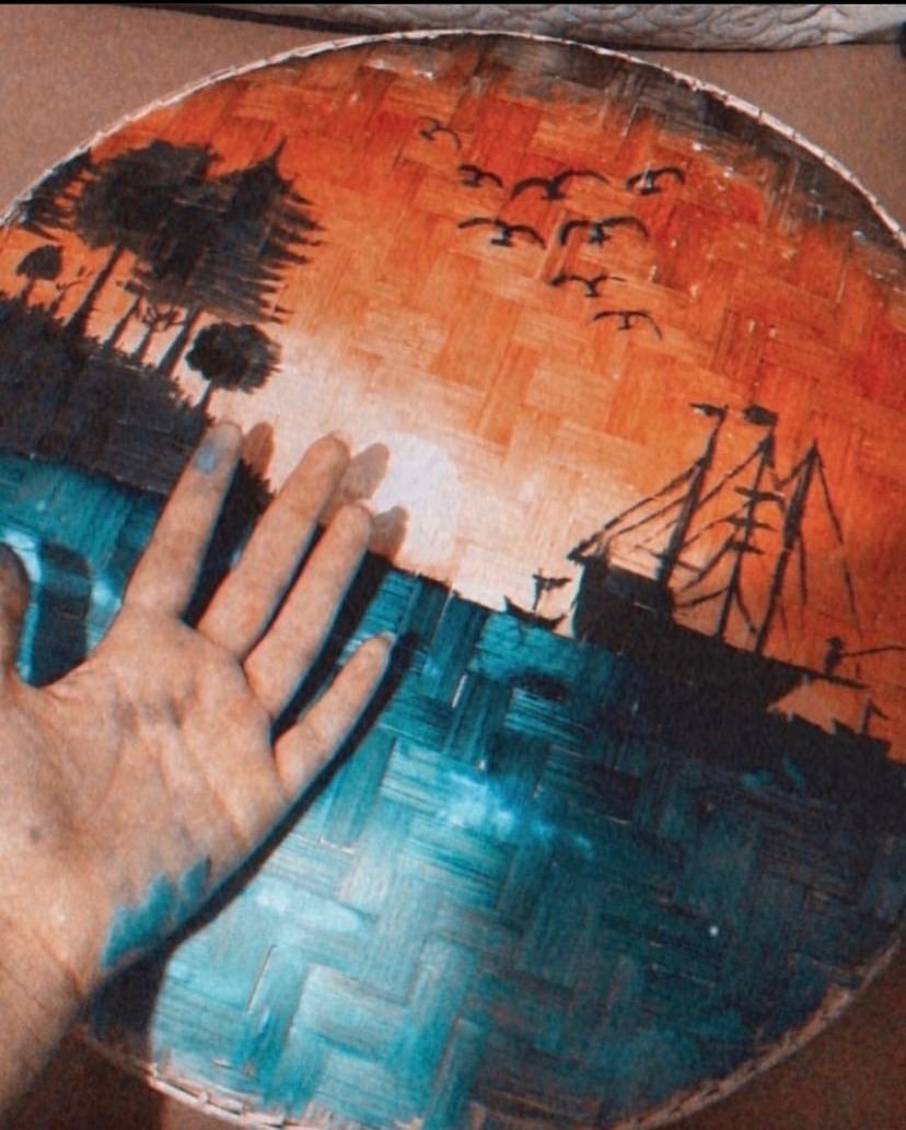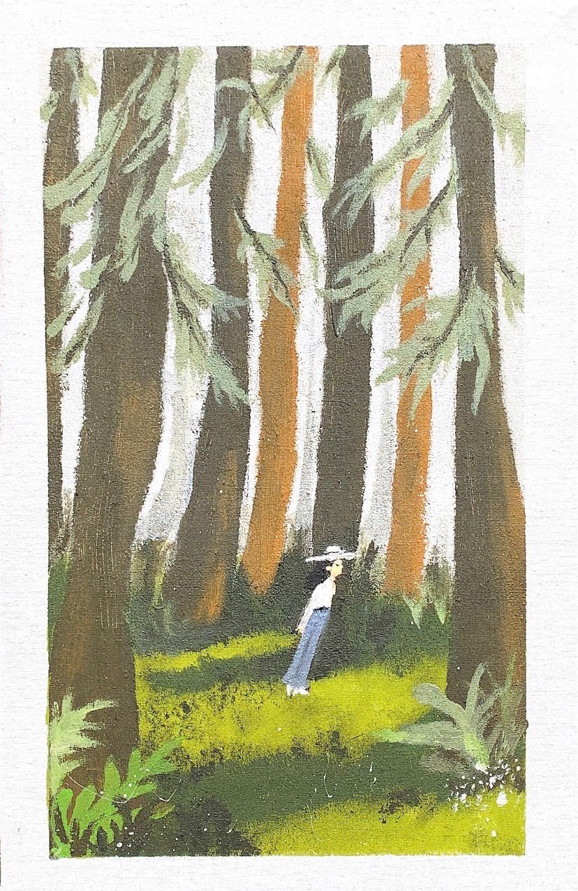 “Lukisan yang mengartikan kesendirian di hutan yang menyatukan energi diri dengan alam.”